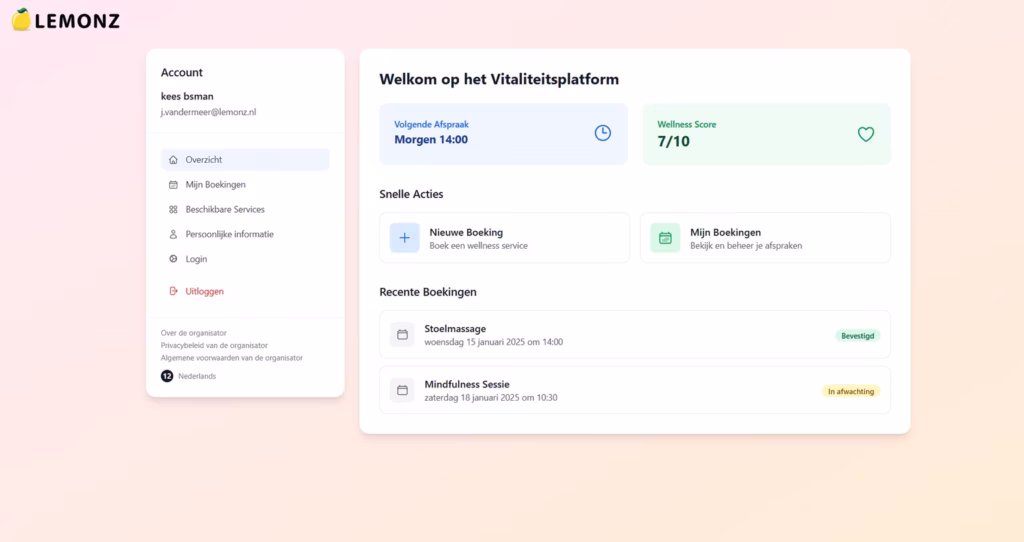 Het platform brengt een breed aanbod aan vitaliteitsactiviteiten en -services samen op één plek, zodat je gemakkelijk kunt kiezen wat bij jouw organisatie past — van workshops en ontspanning tot sportieve activiteiten en gezonde voeding.